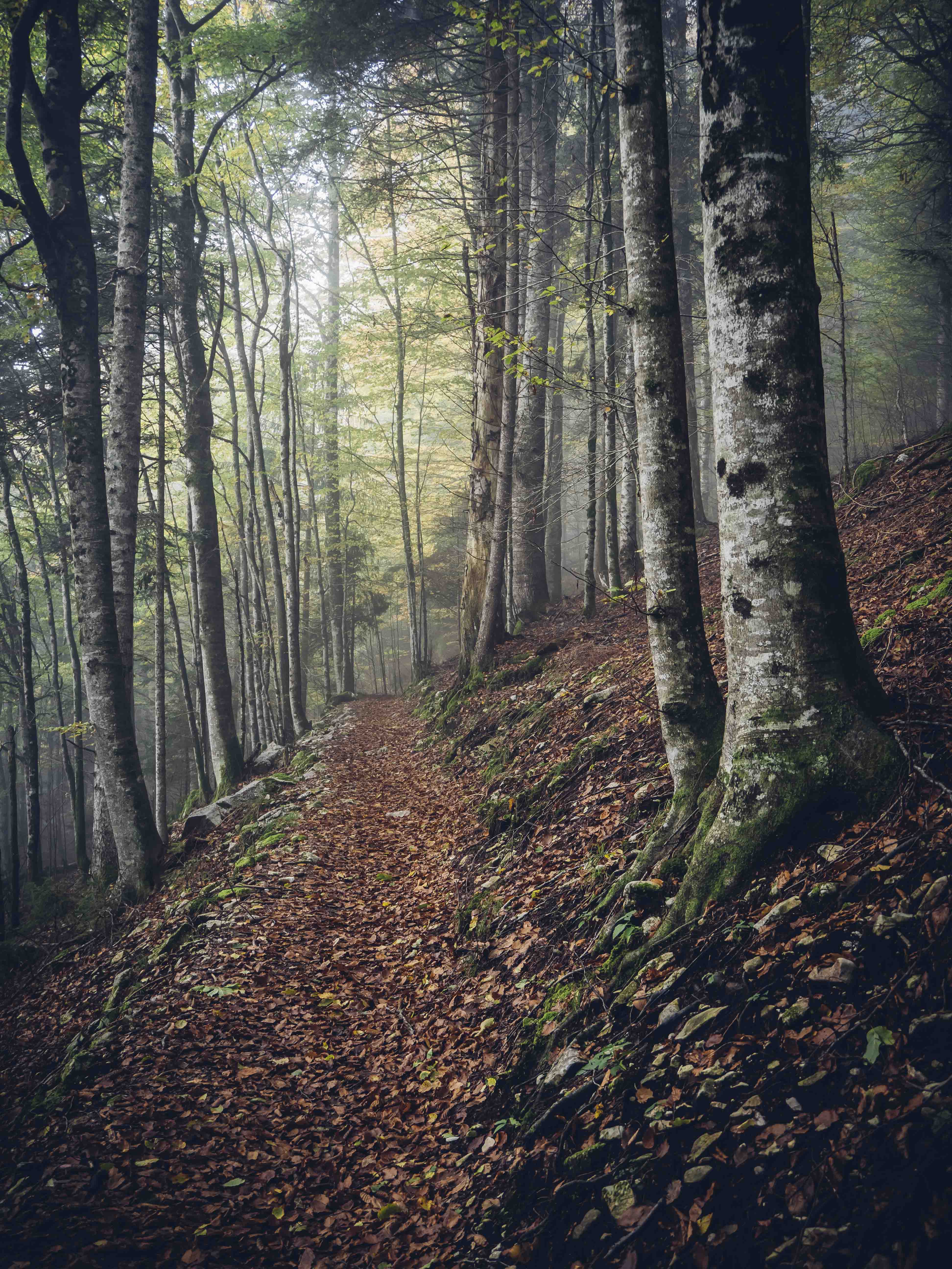 Le foglie scricchiolano sotto le scarpe. L’aria fredda e umida del mattino accarezza i rami ed una lieve nebbia confonde i contorni di una quinta che mi avvolge. Il resto sono solo pensieri che finalmente riesco ad ascoltare.